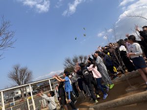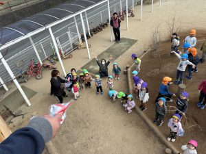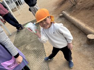 学童さんが、上からお菓子とプチギフトを投げてくれました~