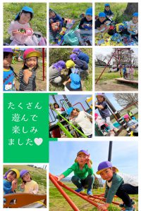 桜の下でお弁当を食べて、まだまだ元気な子ども達は遊具で遊んで楽しみました!