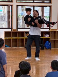 プロレスラーの上村選手が小学校に来られていたようで