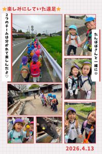 と、タンポポ・以上児クラスはリュックを背負って出発!!