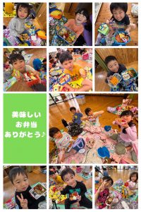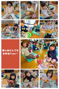 お弁当を持ってニコニコで登園してきた子どもたちでした!